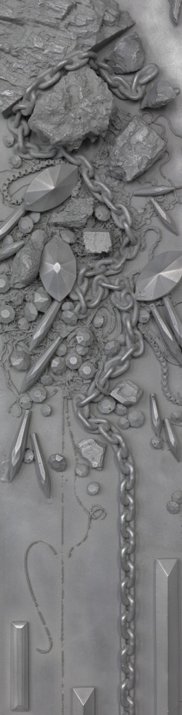 Date : 2018 Lieu : Rue de Grenelle Dimensions : H 6 m, 70m2 Techniques : Staff sur verre, fusain, pastel, huile et aquarelle |