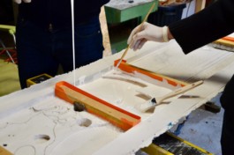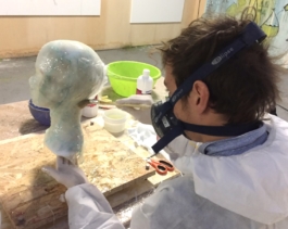 L’utilisation de matériaux de synthèse tels que les résines et les élastomères permet à l’atelier de diversifier les possibilités de rendus des productions et d’améliorer leurs propriétés mécaniques telles que la légèreté et la résistance. En ajoutant des charges minérales (poudre de marbre, calcium etc.) ou métallique (poudre d’aluminium, de bronze, de cuivre etc.) ainsi que des colorants aux résines, il est possible de restituer tout type de textures et de coloris.