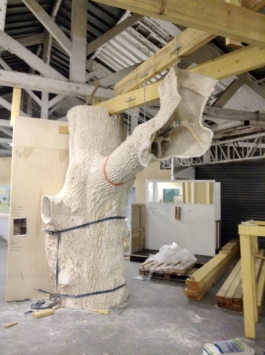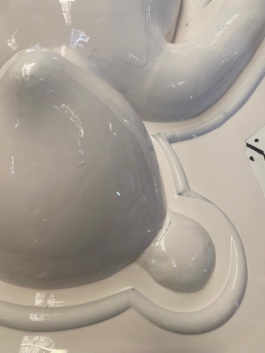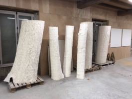 L’atelier fait intervenir l’outil numérique, CAO et PAO, en support de ses techniques artisanales pour offrir aux clients une précision accrue dans des délais et des coûts maîtrisés. Il l’utilise à toutes les étapes de fabrication de l’objet. Dès la phase de recherche, ces nouvelles technologies permettent d’anticiper les contraintes d’ordre esthétique et technique grâce à des rendus virtuels et des simulations. Après validation par le client du prototype, certains éléments de l’œuvre ou du décor peuvent être usinés à partir des modélisations 3D en parallèle des techniques artisanales de fabrication. À titre d’exemple, l’atelier s’est servi du scan numérique pour l’implantation d’une œuvre monumentale de Fabrice Hyber, deux moulages de chênes de 12m de hauteur, dans l’hôtel particulier de l’Abbé de l’épée (75005). Cette prestation a permis à l’atelier de concevoir une armature sur-mesure avec les numérisations de ses moulages. Grâce à la CAO et l’impression 3D, l’atelier a pu restituer l’idée exacte de l’artiste Isabelle Cornaro en reproduisant des éléments de décors pour ses bas-reliefs exposés à l’Orangerie en 2021.